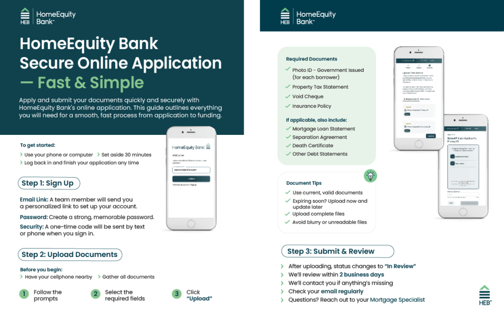 Congratulations on starting your HomeEquity Bank Online Application! Use the resources on this page to guide you through each step.