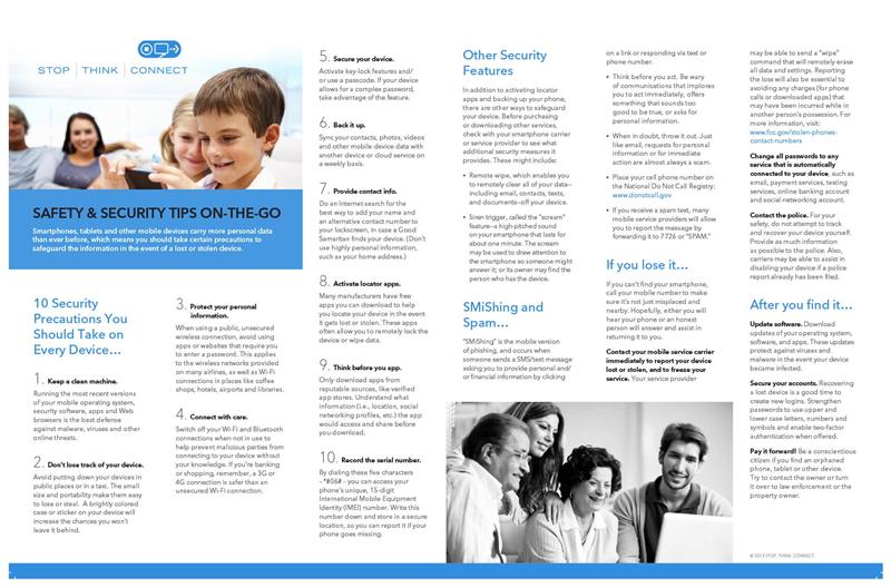 Security Awareness Source: https://staysafeonline.org/business-safe-online/resources/safety-and-security-tips-on-the-go-brochure